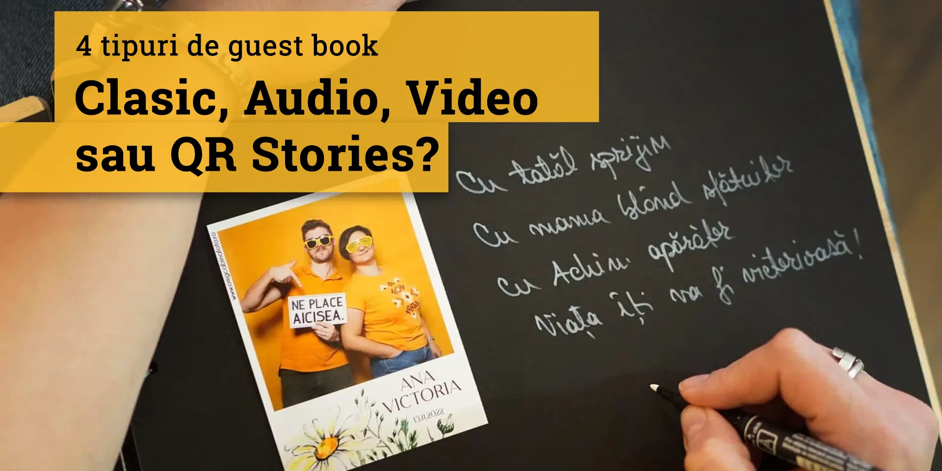 In timp ce muzica se uita si mancarea se termina, un guestbook ramane. Fie ca e un album fizic cu mesaje scrise de mana, o colectie de voci inregistrate pe un telefon retro, clipuri video cu fetele celor dragi sau un album digital QR, fiecare tip surprinde ceva ce celelalte nu pot.